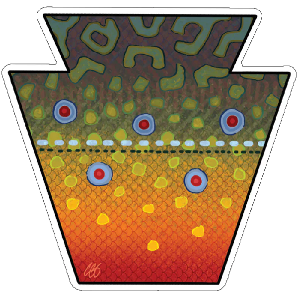 Show your pride for the state of Pennsylvania with this Brookl Trout filled design featuring the iconic Keystone. This decal is the perfect statement piece for your car, truck water bottle or any other surfaces in need of some fishy flare. Every fish decal is made from high quality vinyl and features a protective UV gloss coating, adding to its overall durability.